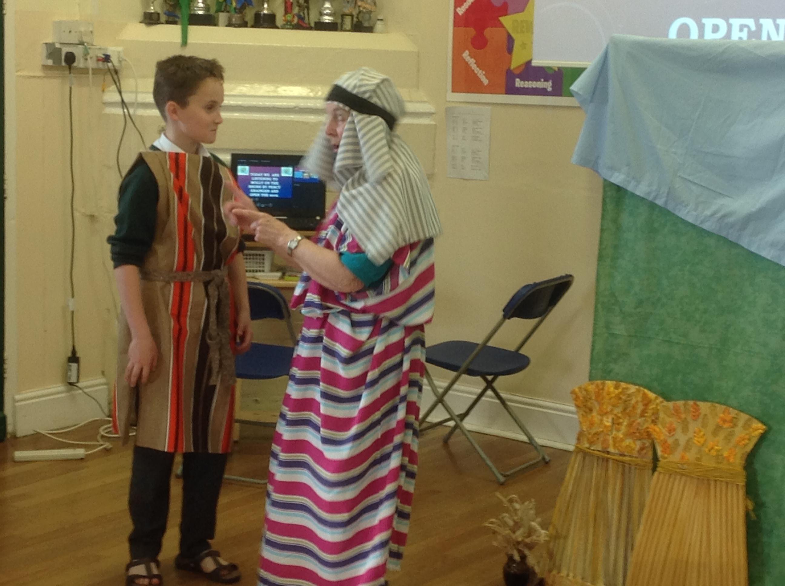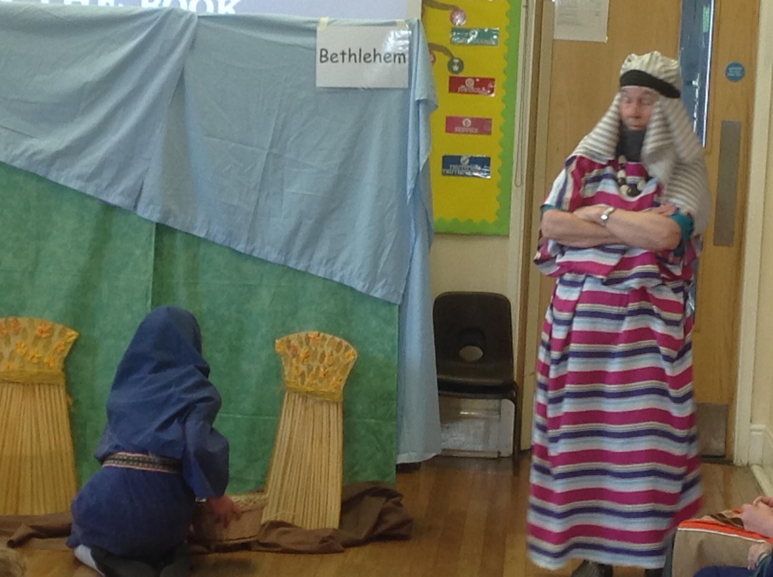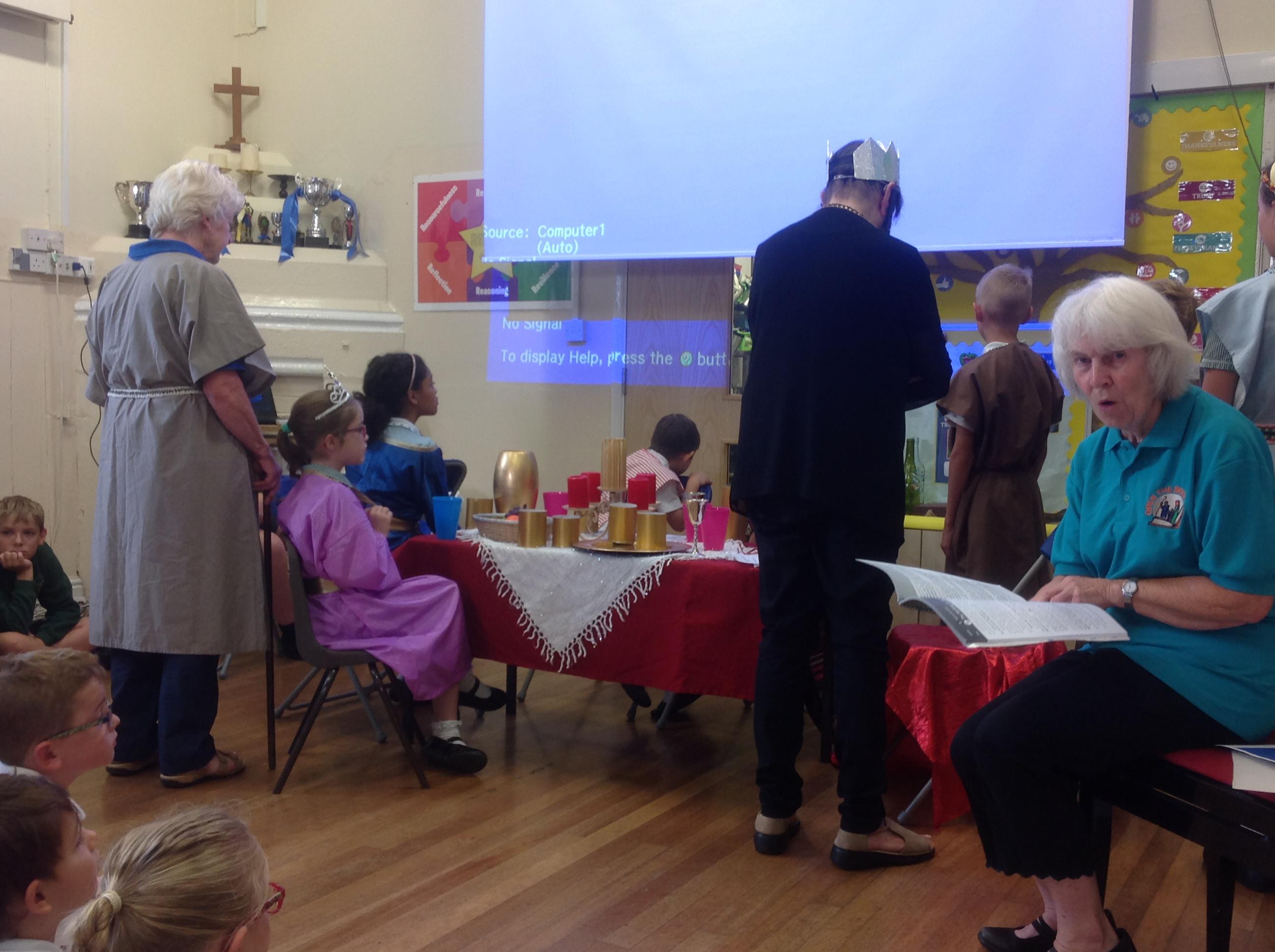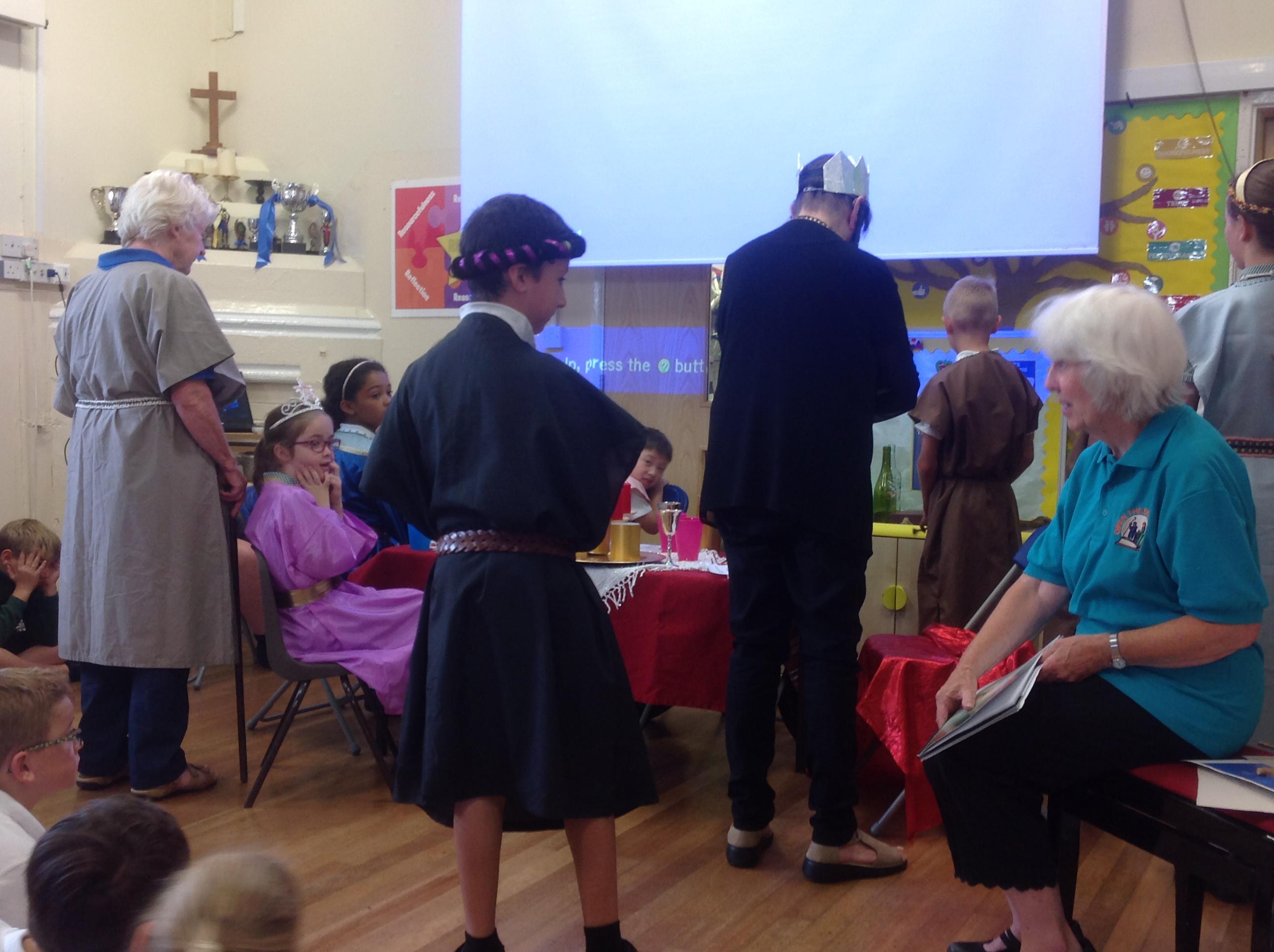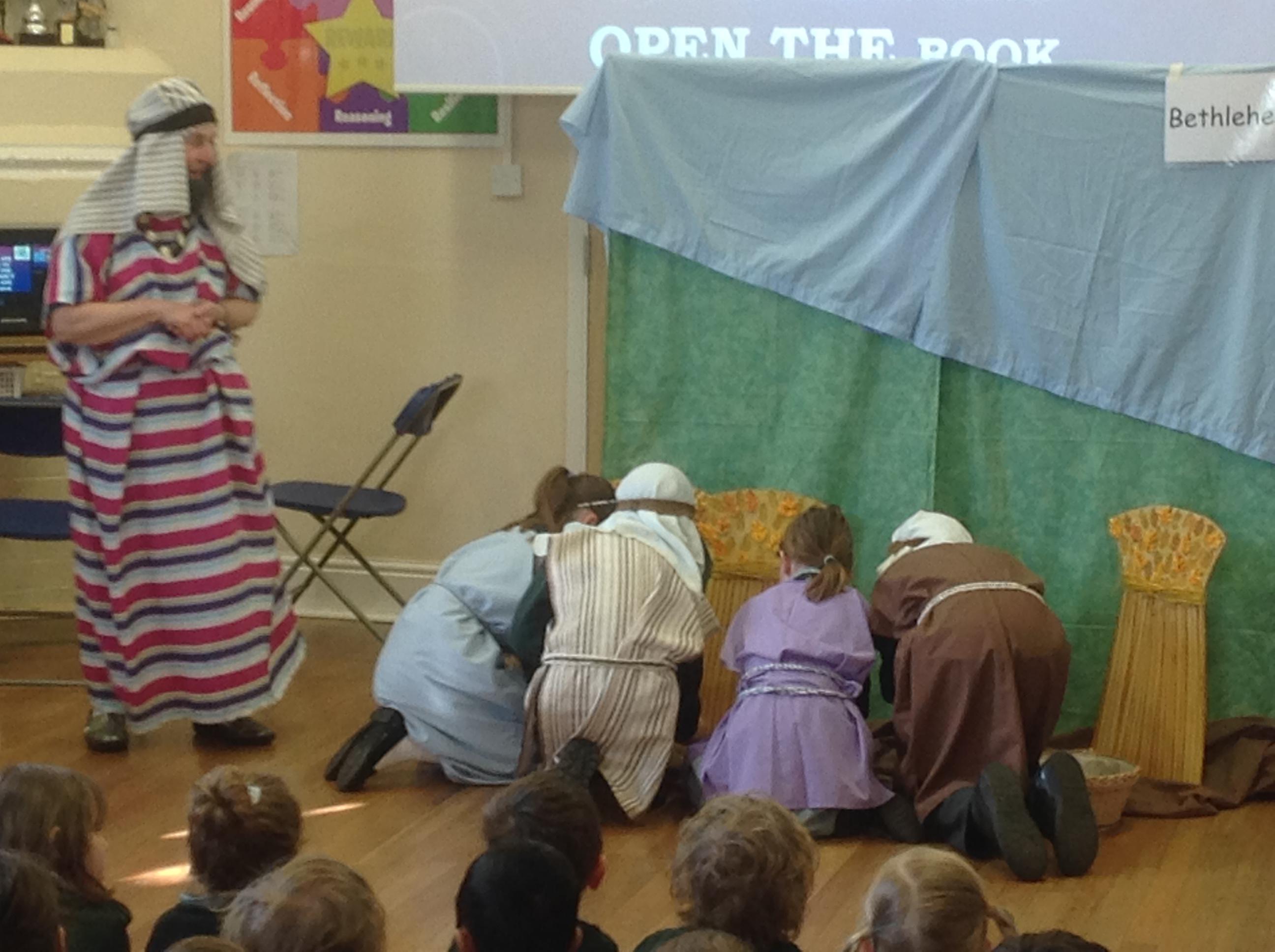 Each Thursday, we welcome a local church group to 'Open the Book' and re-tell a Bible story. This always involves a child- friendly interpretation, keen pupil actors chosen from across all year groups, super props and sets and a fine selection of knitted beards!