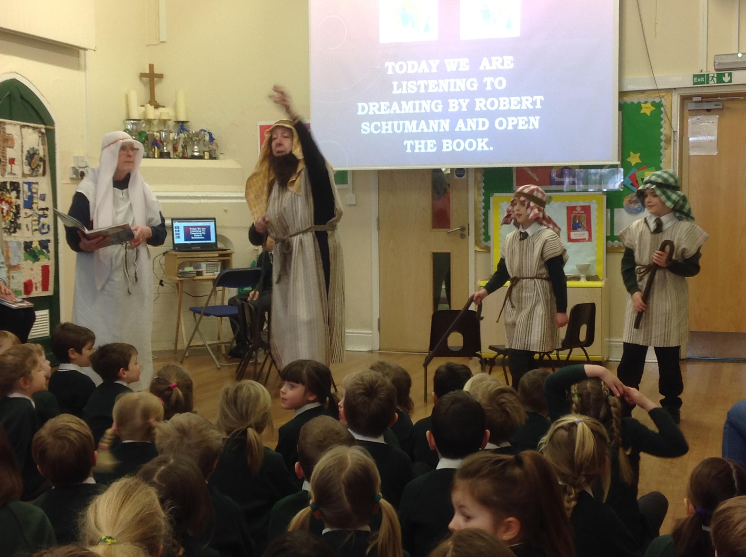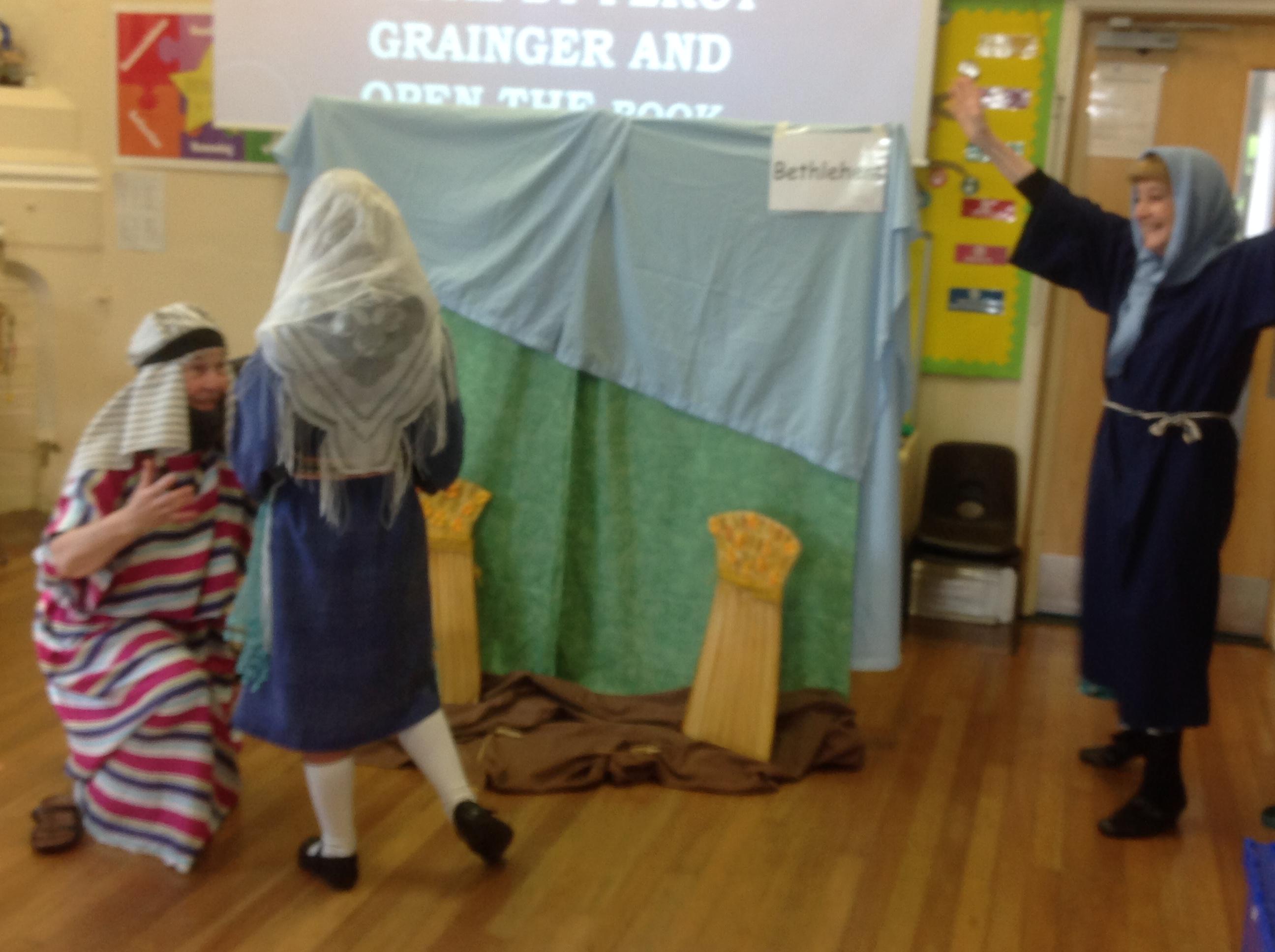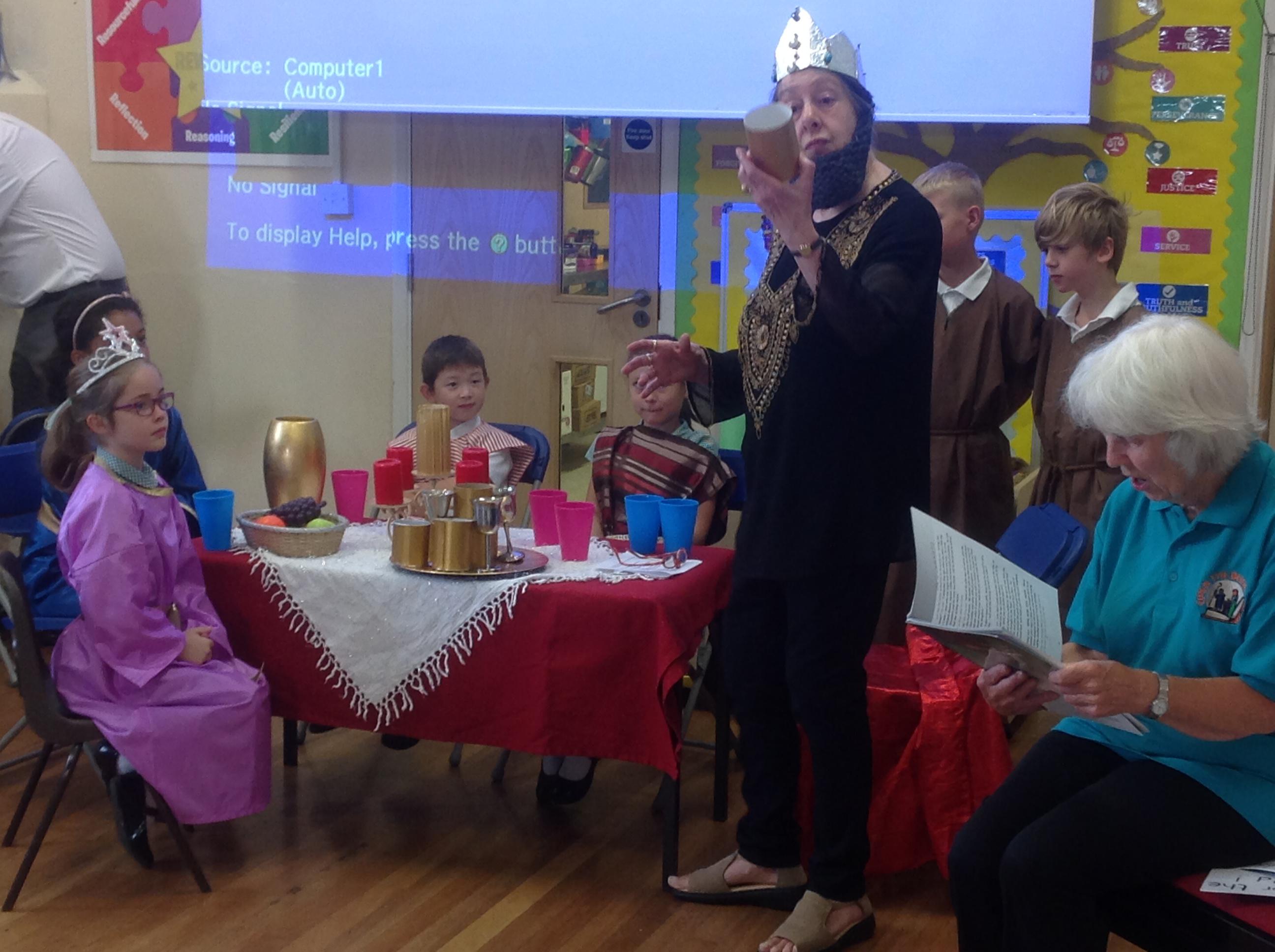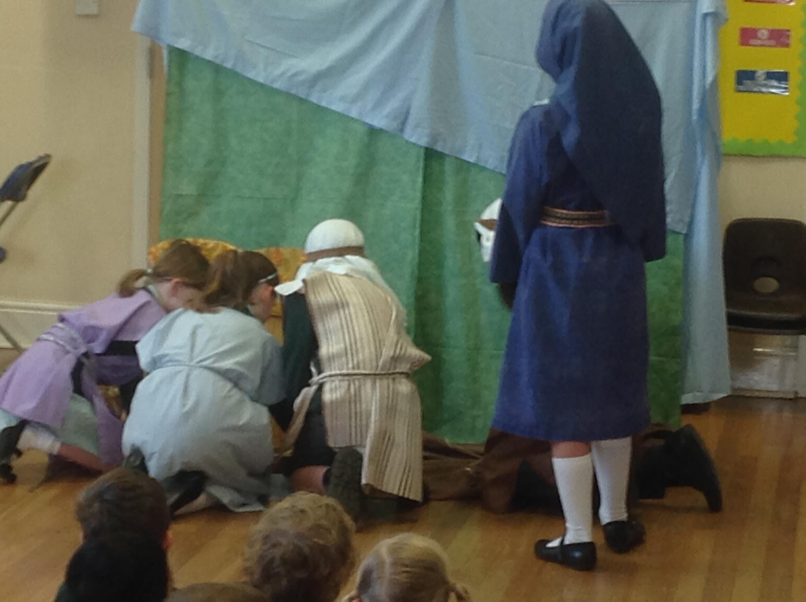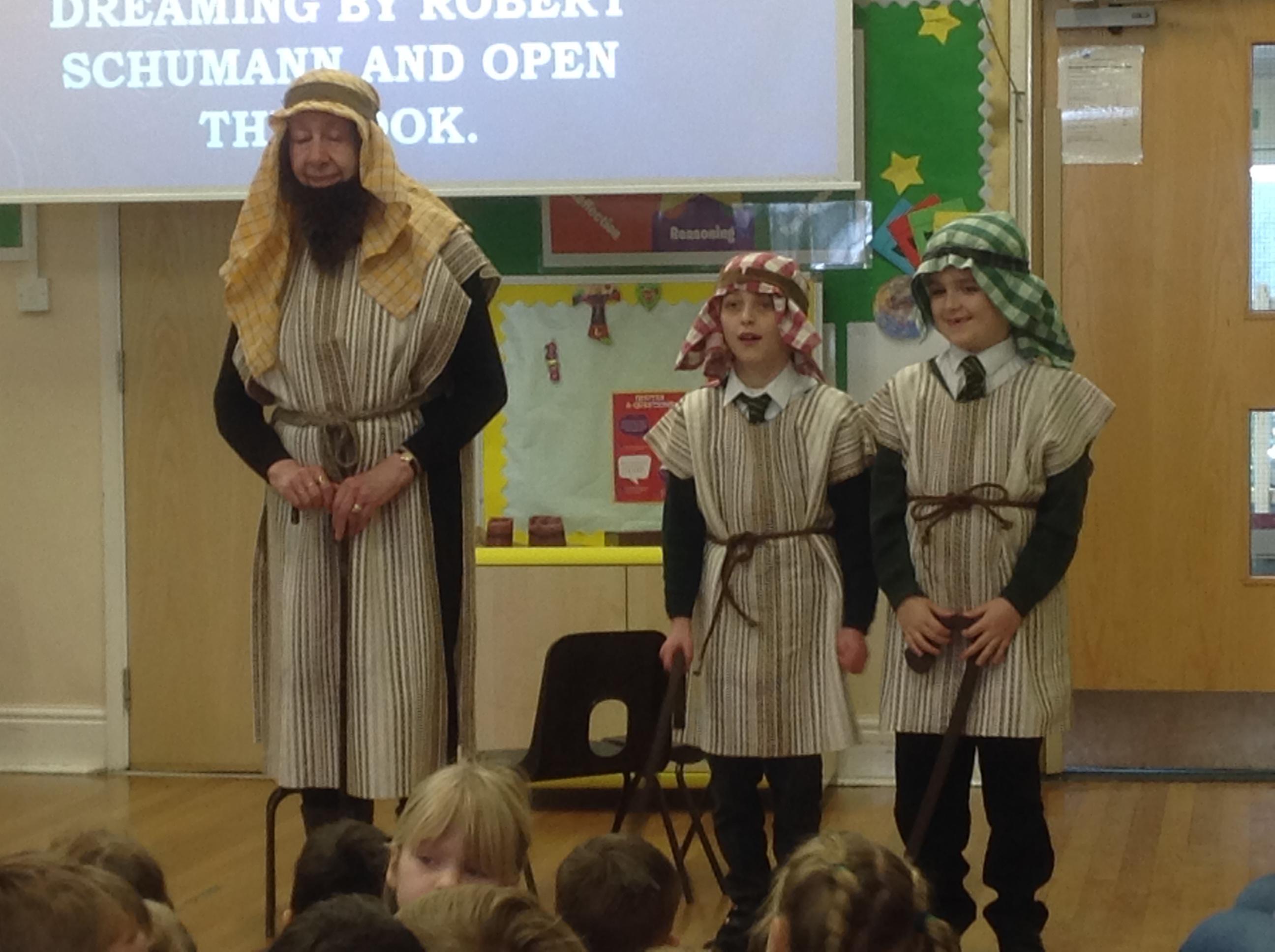 Each Thursday, we welcome a local church group to 'Open the Book' and re-tell a Bible story. This always involves a child- friendly interpretation, keen pupil actors chosen from across all year groups, super props and sets and a fine selection of knitted beards!