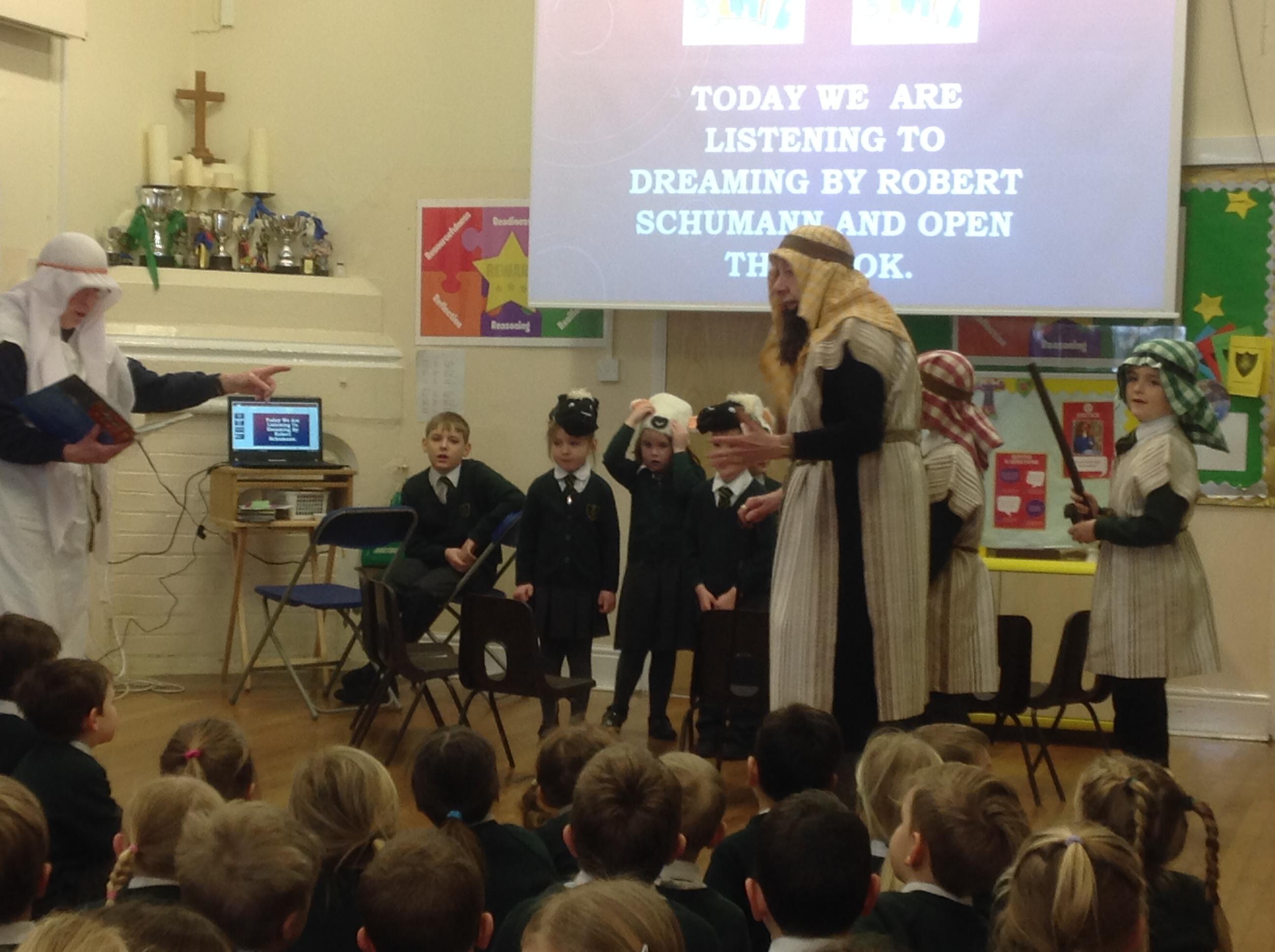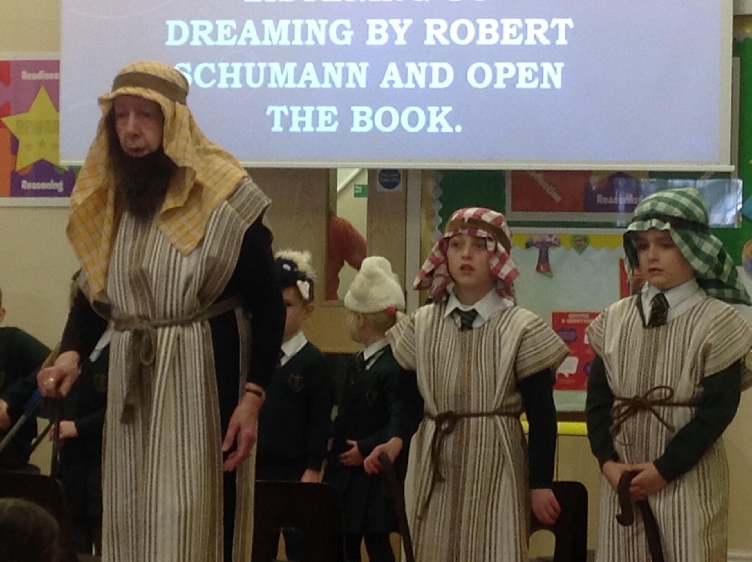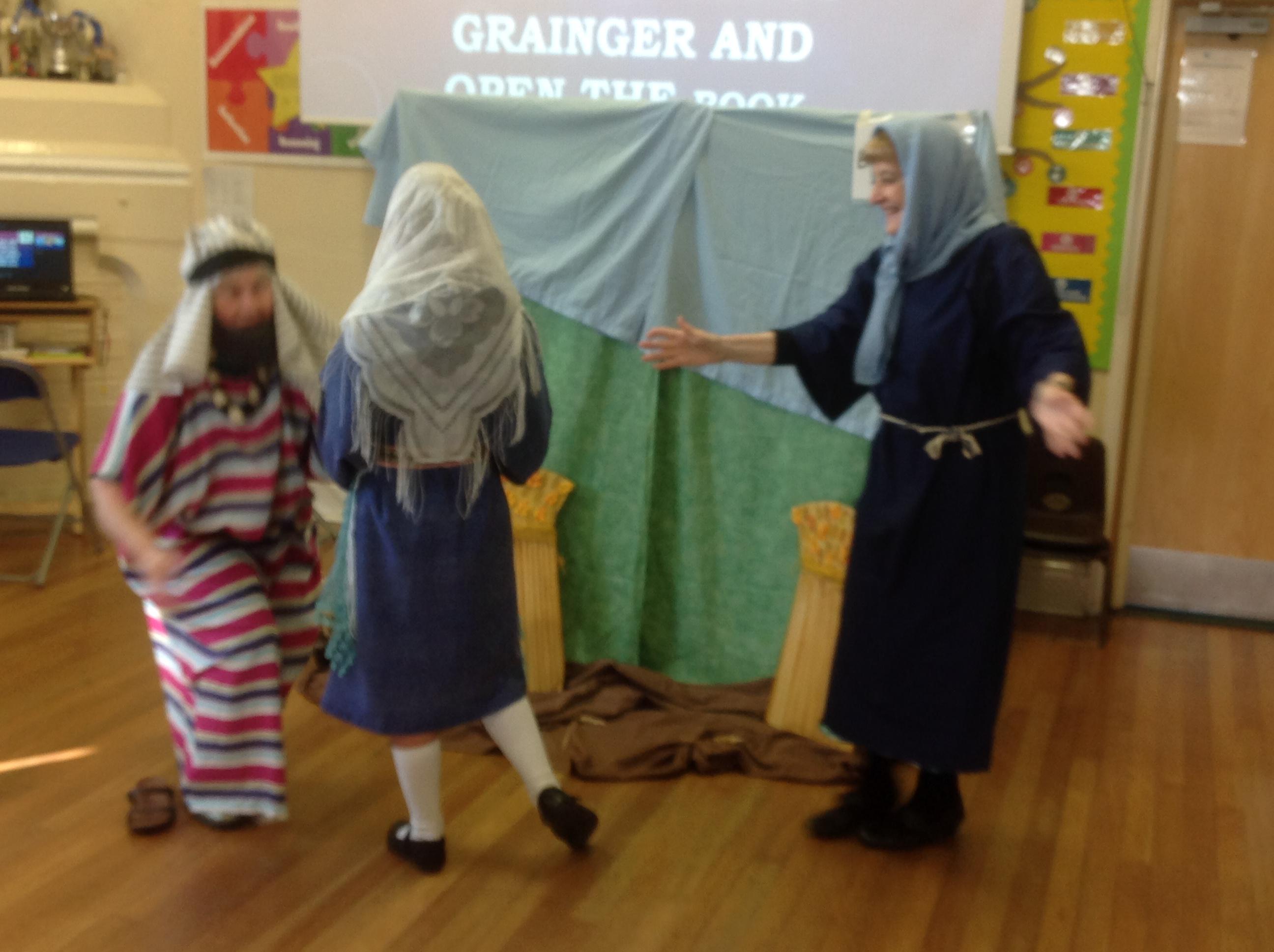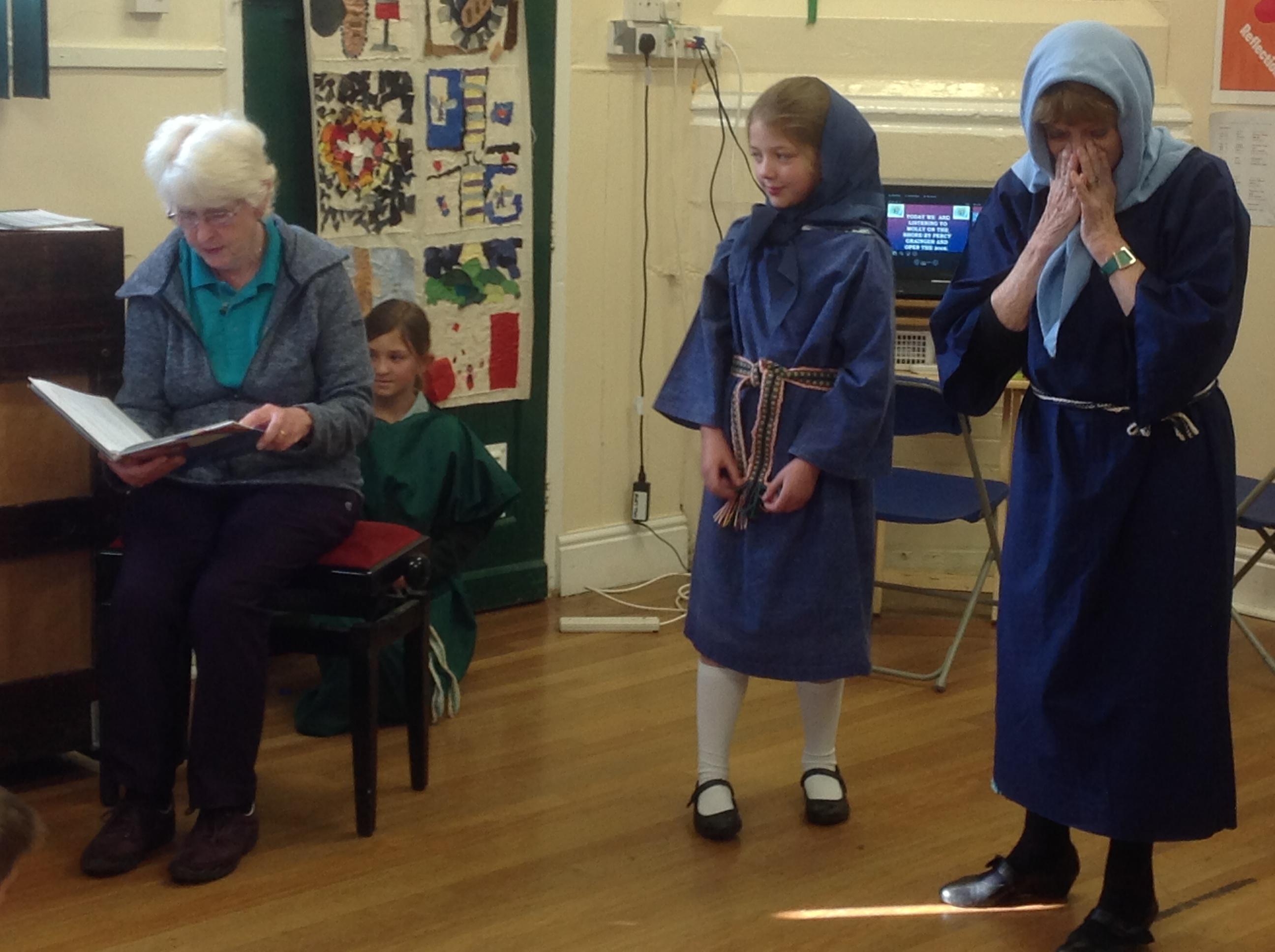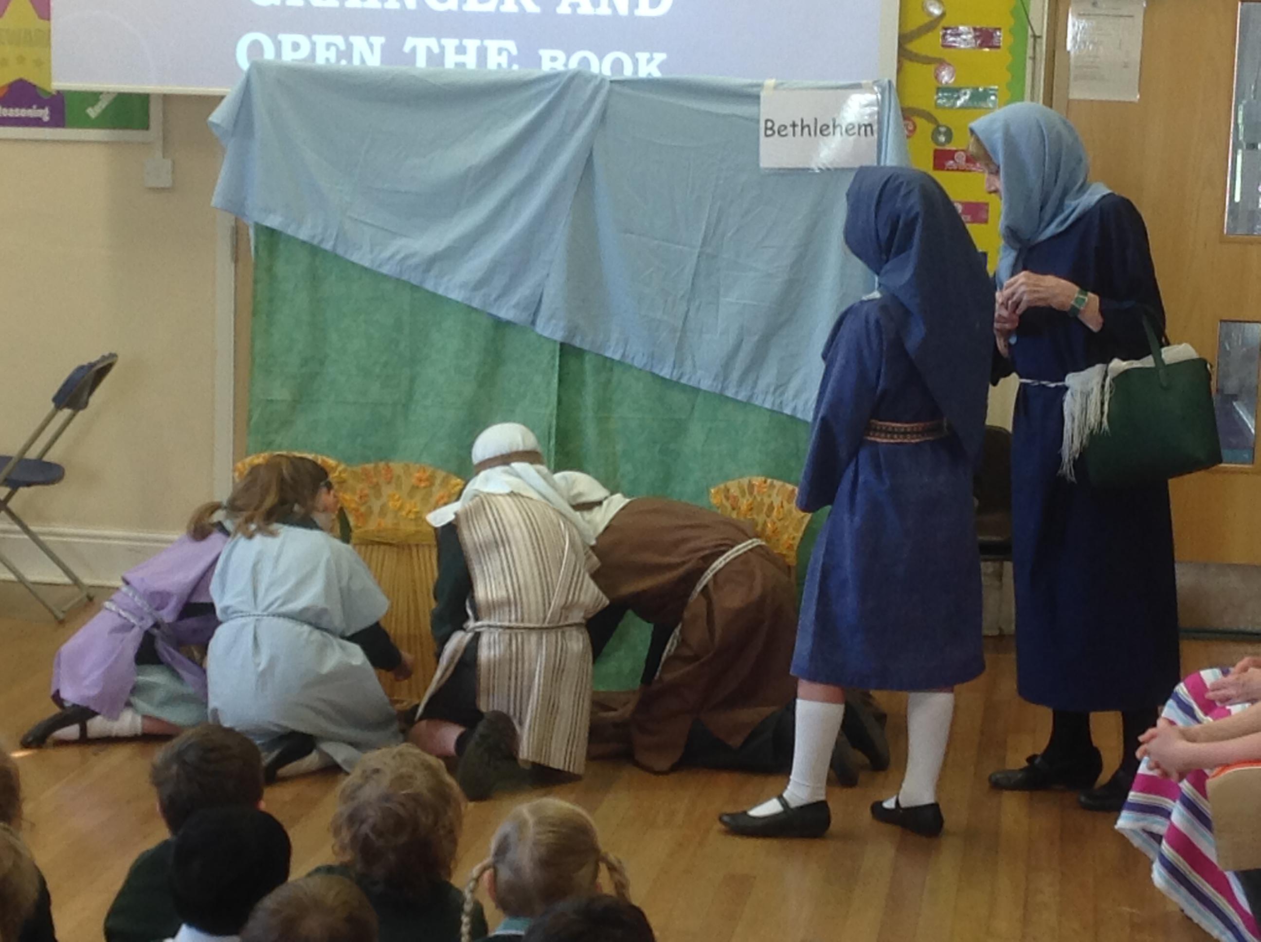 Each Thursday, we welcome a local church group to 'Open the Book' and re-tell a Bible story. This always involves a child- friendly interpretation, keen pupil actors chosen from across all year groups, super props and sets and a fine selection of knitted beards!