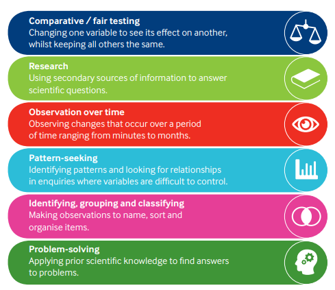 • Develop understanding of the nature, processes and methods of science through different types of science enquiries that help them to answer scientific questions about the world around them