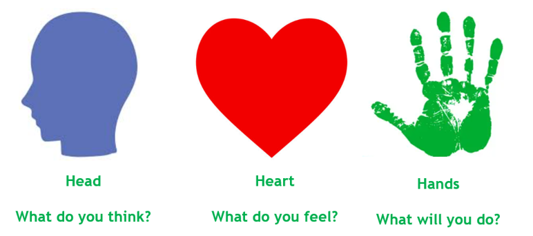 We use 'Heads, Hearts and Hands' to explore the world around us in a spiritual manner and encourage children to reflect on their feelings and reflect, respond to and seek to give meaning and purpose to the experiences that they encounter in life.